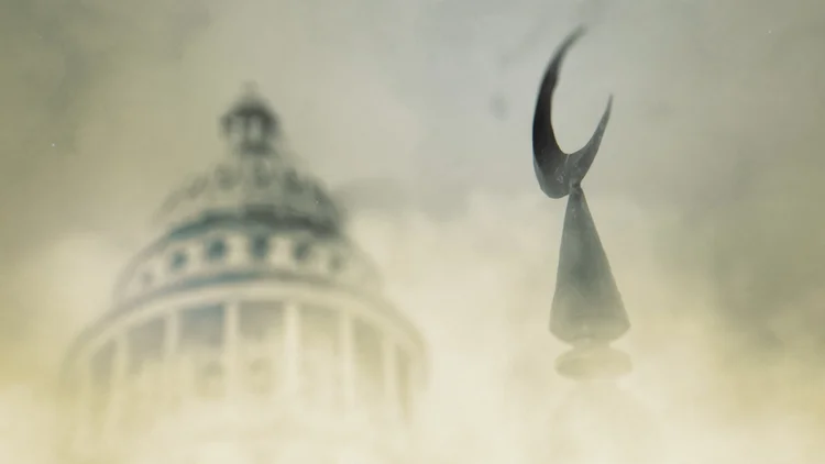 Provocative combinations of Islamic and Texan-American imagery were 3D projection-mapped and wrapped in a combination of heat distortion and smokey atmospherics that help foreshadow the fire. Color palette is also used as a metaphoric story driver, as the imagery is first treated in cooler, muted tones, but slowly progresses to a fiery orange, working in lockstep with the audio, building to the final logo resolve, shrouded in orange smoke.