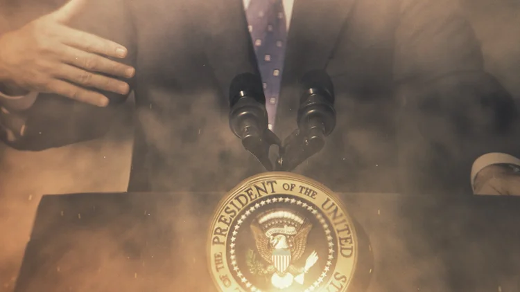 Our design and animation teams answered the call, creating an amazing array of visual juxtapositions and metaphors to help simplify these complex series of narratives. The sequence is an amalgam of iconic sounds bites that serve as a historical timeline of these cultural disparities, supported by dynamic imagery, all working together to build tension in the lead up to the logo resolve.