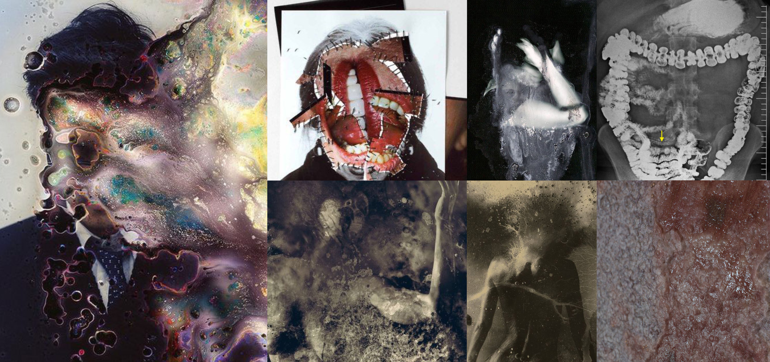 The contact sheets degrade over time, decomposing and disfiguring our models. Duplication, repetition and cleverly applied offsets produce extra limbs, stretched and smeared faces. Our models are contorted, distorted, and manipulated into unnerving assemblages of mismatched body parts, presenting a horrific tableau that remains seared into the viewer’s psyche.