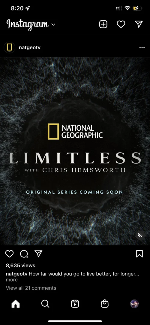 Hemsworth stars in National Geographic’s new series ‘Limitless’, which endeavors to understand the limits of the human body and discover ways to combat aging in a documentary series created by Darren Aronofsky.