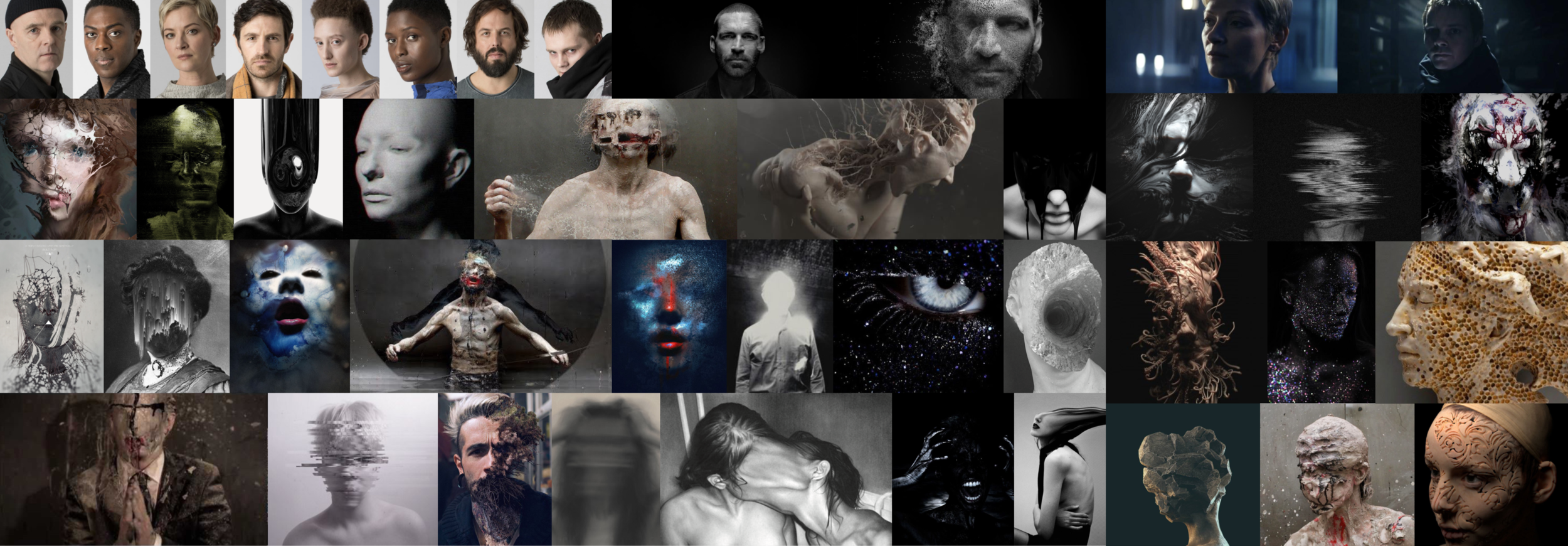 An experimental R&D process led to various techniques for distorting the geometry of each character’s face. Serving as contextual references, the distortions represent specific internal struggles that tap into the backstory and narrative arc of each character.